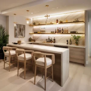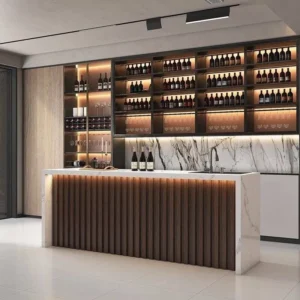 Ensure that your custom home bar is a fashionable and functional complement rather than a messy corner. Maintain the neat organization of bottles, glassware, and accessories, and at the same time enjoy a space that is welcoming, classy, and easy to use.