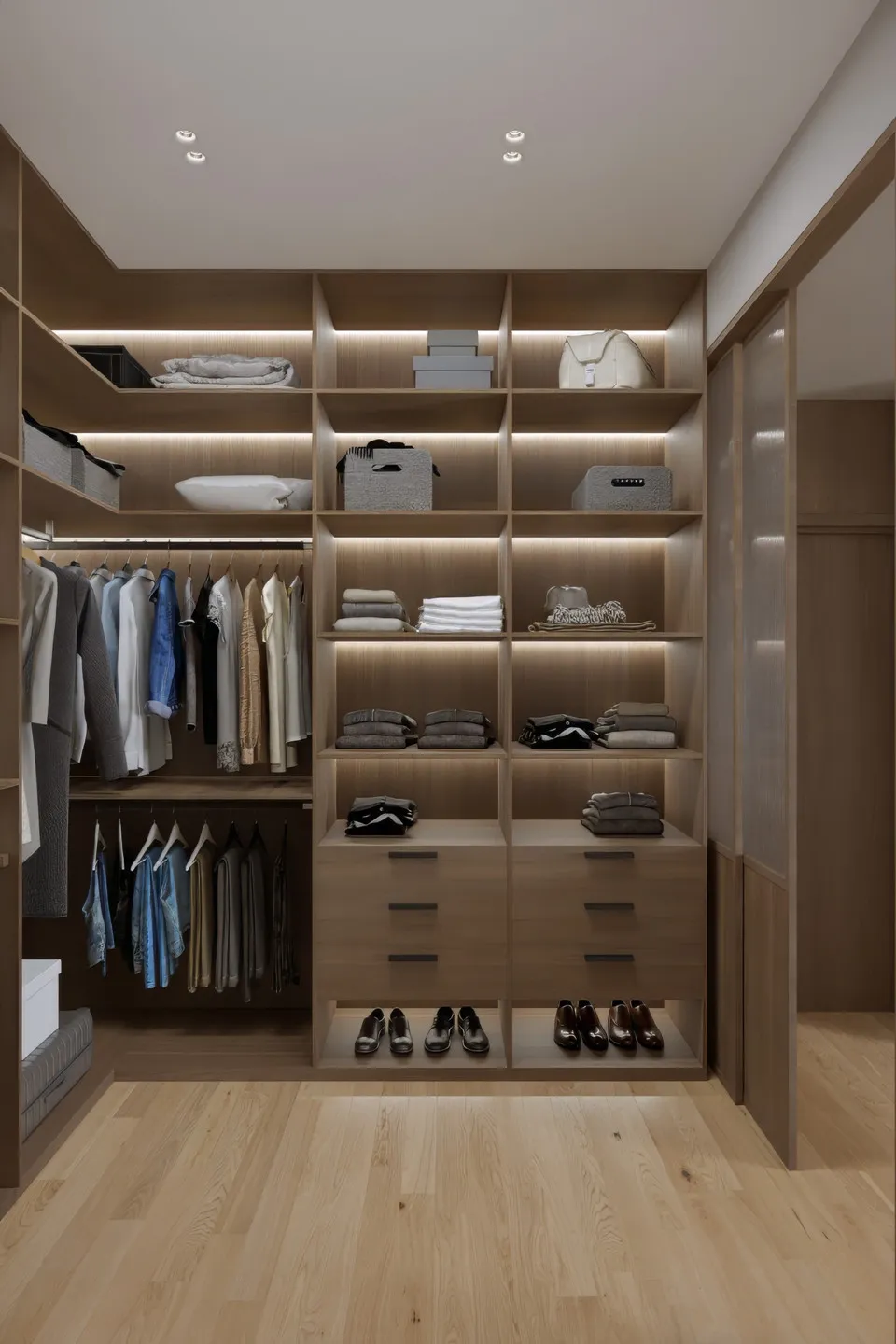 A wardrobe that expands as your needs change. Smart shelving, refined finishes, and adaptable layouts not only simplify your organization but also maintain a classic, stylish look that exudes comfort.