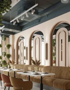 Creating memorable restaurant interiors. A smooth flow, trendy décor, and a well-thought-out use of space make every visit a pleasant, fun, and memorable experience.